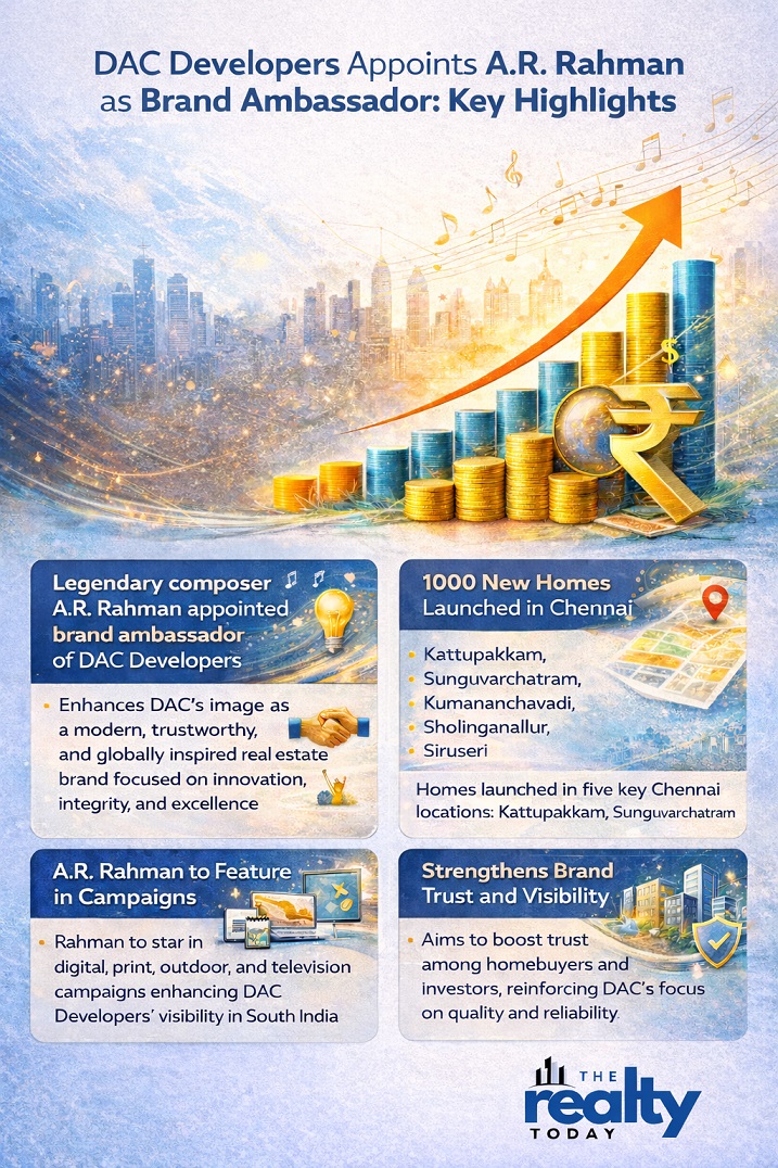 - DAC Developers has appointed legendary composer and global music icon A.R. Rahman as its brand ambassador, marking a major milestone in the company’s brand journey.