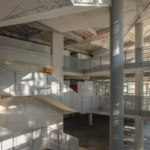 Concrete, chosen for its durability and permanence, provides the building with a sense of strength and stability. Yet the architects balance this solidity with porosity and layered volumes, allowing natural light and ventilation to permeate the interiors. The interplay between mass and void results in a structure that feels both grounded and welcoming, highlighting Cadence Architects’ ability to merge monumentality with human-scale considerations.