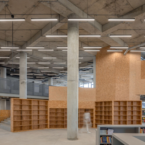 The architects describe the library as a space that promotes cross-disciplinary engagement, offering zones for quiet study alongside expansive communal areas. This flexible approach reflects a contemporary trend in educational architecture: creating spaces that accommodate diverse learning methods, from focused individual research to collaborative projects, without compromising on spatial coherence or aesthetic integrity.