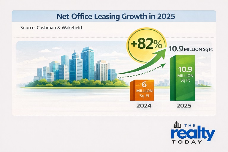 A report by Cushman & Wakefield states that the region saw a net office leasing increase of 82 per cent year, on, year, to 10.9 million sq ft, in 2025, compared with 6 million sq ft the previous year.