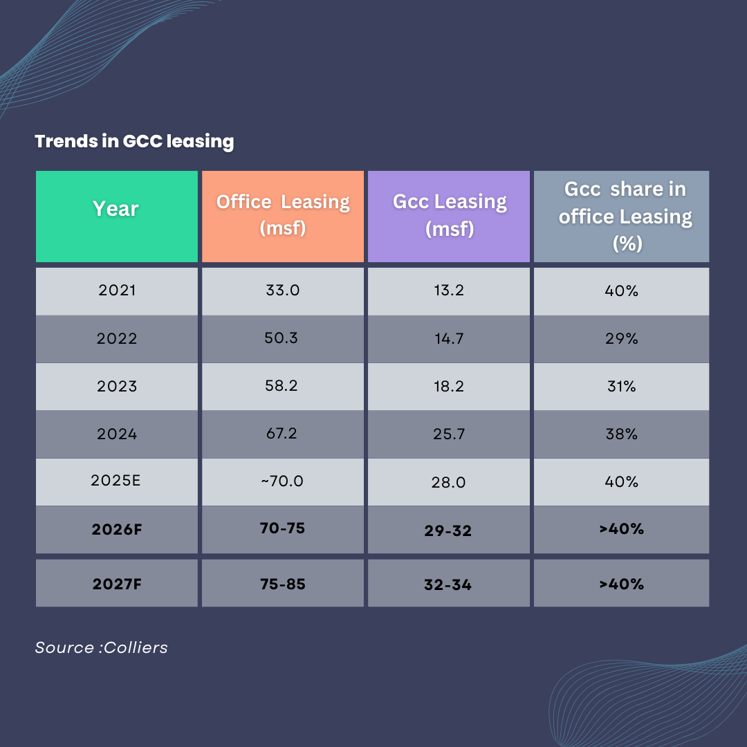 “GCCs continue to remain the cornerstone of India’s office market, powering its ongoing scale-up. Capability centers in India are steadily evolving into innovation-driven, domain-specialized, and technologically integrated centers, and are likely to drive over 40% of India’s office space demand. In the next two years alone, GCCs are likely to lease 60-65 million square feet of Grade A space across the top 7 cities, —unlocking significant real estate opportunities, fueling demand for high-quality spaces, and cementing their role as the critical growth engine of India’s office market.” says Arpit Mehrotra, Managing Director, Office Services, Colliers India.