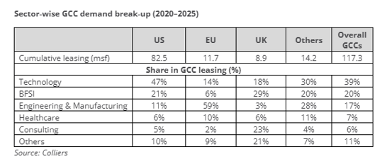 “Recent trade agreements with the US, EU and UK can potentially boost foreign investments in country and amplify real estate demand across economic sectors including GCCs in India. This is likely to complement the regulatory push and ongoing policy tailwinds, boosting the annual demand for Grade A office space in India. We anticipate 35-40 million sq.ft. of annual GCC leasing, accounting for 40-50% of the overall office space demand over the course of next few years. While Technology based GCC demand from US firms can stabilize, we anticipate increasing traction from companies of EU and UK origin, especially within the Engineering & manufacturing, BFSI and consulting domains.” says Arpit Mehrotra, Managing Director, Office Services, Colliers India.