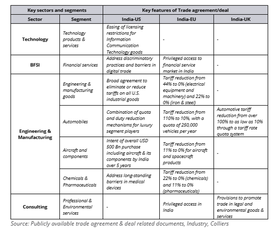 Recent trade agreements & deal features: Select high impact sectors from a GCC demand (in India) perspective