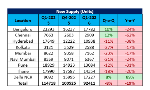 Samir Jasuja, Founder & CEO, PropEquity said, “Housing sales continued to moderate in the first quarter of 2026 with Delhi-NCR and Bengaluru emerging as outliers. This reduction is on account of low supply across most cities. Close to 22,000 lesser units were supplied in Q1 2026 as compared to the same period last year.”