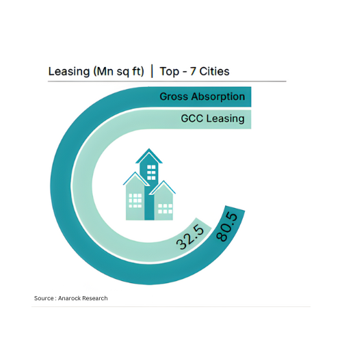 India’s office market has continued its strong upward trajectory, reflecting a period of steady expansion and renewed confidence. In 2025, leasing activity across the top seven cities crossed a significant mark of 80 Mn sq ft, setting a milestone for the top 7 cities. The continued rise highlights the depth of occupier demand and the resilience of India’s commercial real estate sector, the reason being the growing footprints of GCCs share in overall leasing. In 2025, GCCs accounted for a little over 32 Mn sq ft of the total office leasing across the top 7 cities.