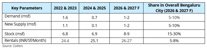 5-7 msf of likely Grade A office space demand over the next two years in CBD, SBD 2 & Electronic City