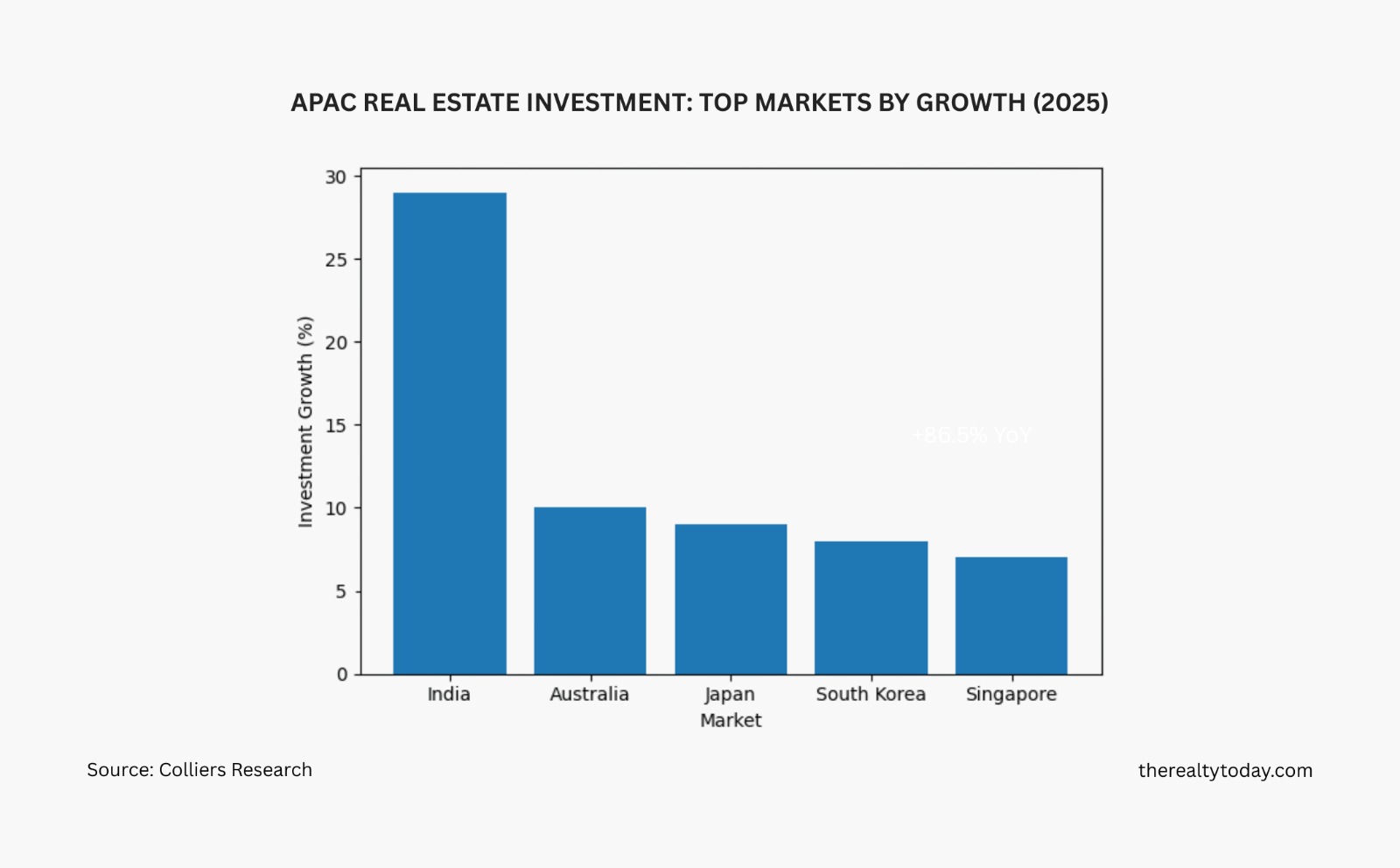 India’s real estate sector emerged as one of the fastest-growing investment destinations in the Asia-Pacific region in 2025, with institutional inflows rising 29% year-on-year to about $8.5 billion, according to a report by Colliers.