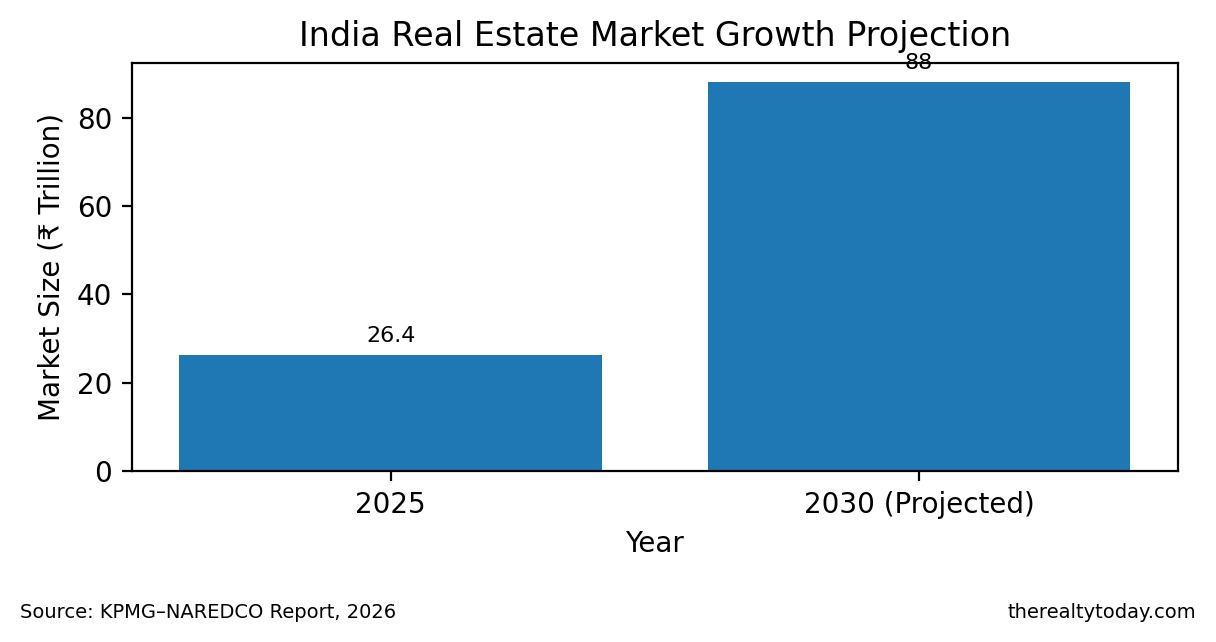 India’s real estate sector is projected to witness strong expansion over the next five years, with the overall market size expected to more than triple by 2030, according to a joint report by KPMG and the National Real Estate Development Council (NAREDCO).