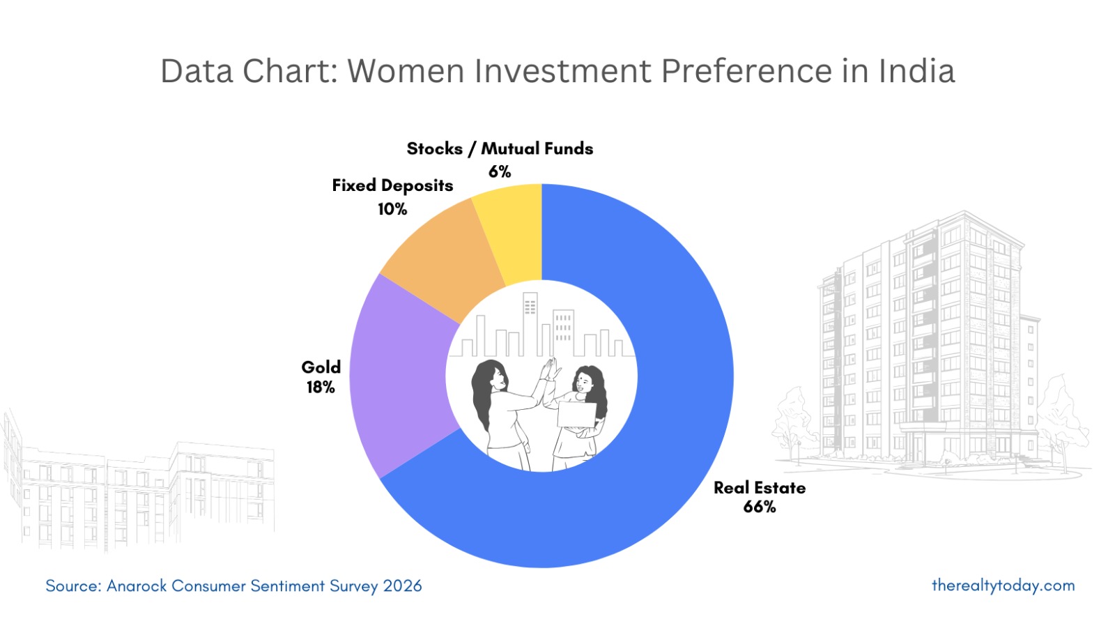 Recent research “Anarock Consumer Sentiment Survey 2026” suggests that around 66–71% of women now prefer investing in residential real estate, making it the dominant investment choice compared to traditional assets such as gold, fixed deposits or equities.