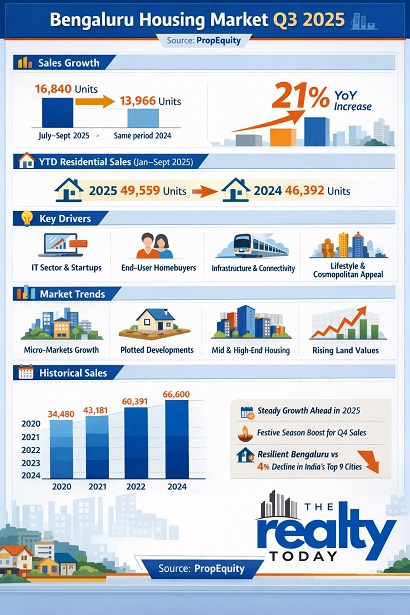As per realty data analytics firm PropEquity, the number of housing sales in Bengaluru remained unchanged at a total of 16,000 in the October-December quarter of the previous year. But the observed absorption levels and lack of inventory overhang have encouraged developers to launch new projects in established as well as emerging residential routes in Bengaluru.