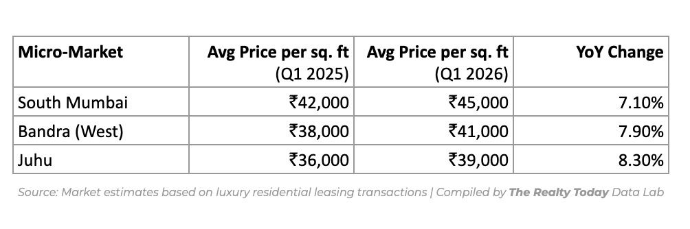 ● Juhu, long favoured by celebrities, has recorded some of the sharper price movements in the luxury bracket, supported by strong absorption and constrained new supply.
