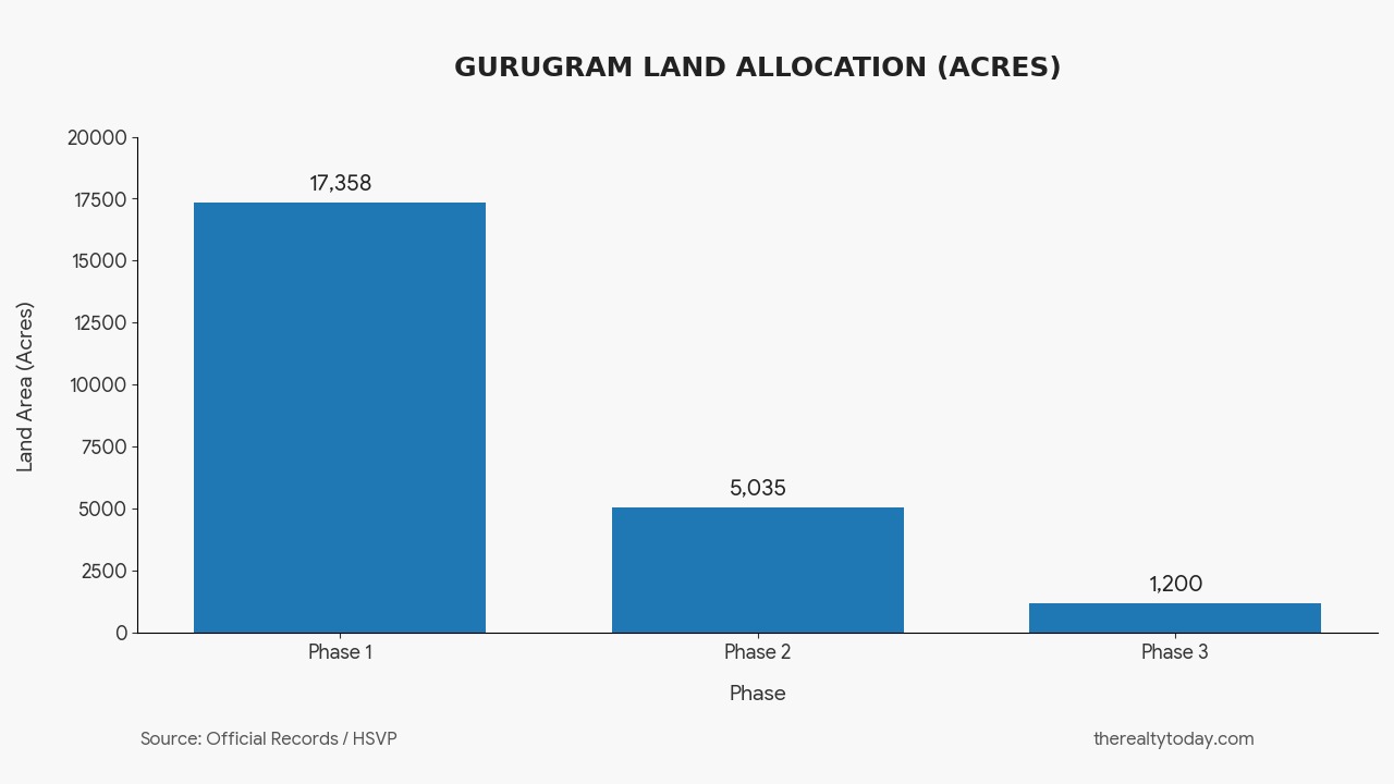 - Phase 1 (March–April): Around 17,300 acres in Gurugram, covering about 51 sectors, including areas such as 26, 36A, 59–63, 76–80 and up to 113. Landowners can begin offering their plots through the e-Bhoomi portal from Mar