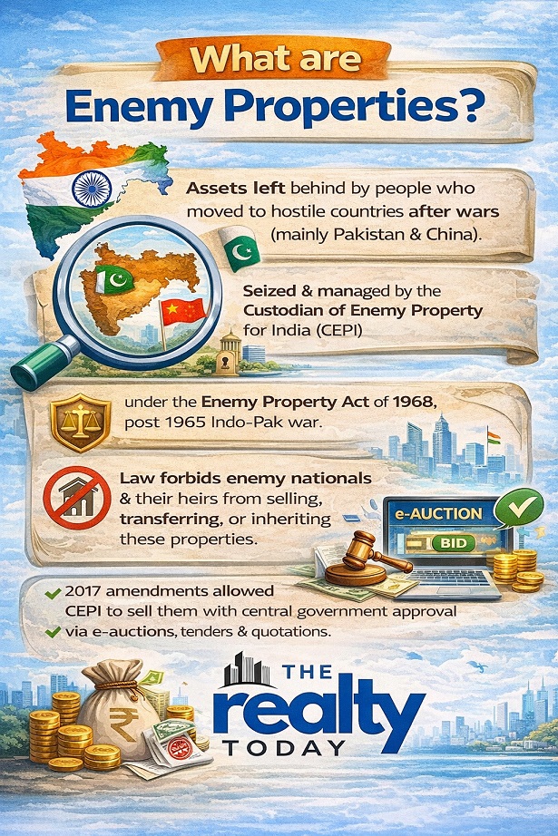 Enemy properties are the assets left behind by people who moved to the countries which were hostile to India, mainly Pakistan and China, after the wars and geopolitics. These properties were handed over to the Custodian of Enemy Property for India (CEPI) under the Enemy Property Act, 1968, which was enacted after the 1965 Indo, Pak war. The law forbids enemy nationals and their heirs from selling, transferring or inheriting such assets.