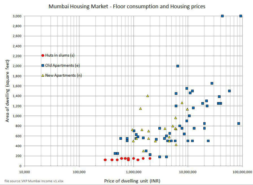 Fig.3 Graph of Area in square feet v. Price in the city of Mumbai