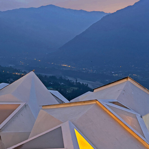 Each of the cottages is set up to have the best possible view of the Naggar Valley, and the geometrical shapes were optimized for both structural sturdiness and environmental performance by means of computational design tools. The shells help to spread the weight of the structure over the slope, thus lessening the load on the foundations and, at the same time, lowering the amount of embodied carbon in comparison with the traditional heavy masonry systems.