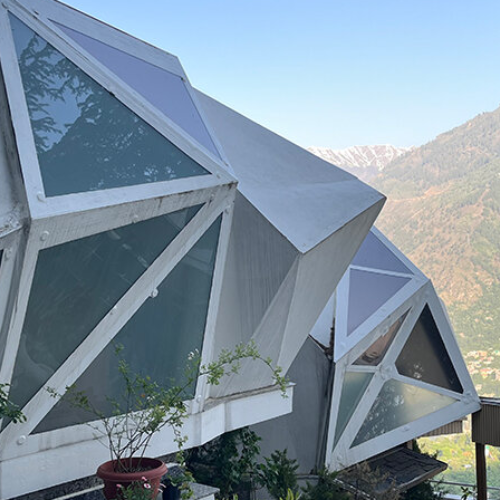 Local materials are prioritized to lower the carbon footprint of transportation and at the same time to make the project more connected to the region. The use of lightweight steel and thin, shell concrete not only helps in reducing the total amount of materials used but also gradually allows for ecological recovery. It is likely that eventually, plants will grow on the concrete shells, thus the forms will become less harsh and the architecture will naturally blend into the landscape. Passive design strategies, top, notch insulation, and correct orientation work together to keep the energy use to a minimum while at the same time the retreat remains a discreet visual element against the Himalayan backdrop.