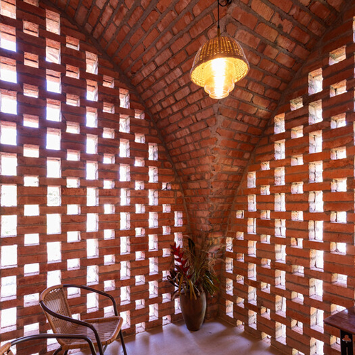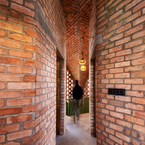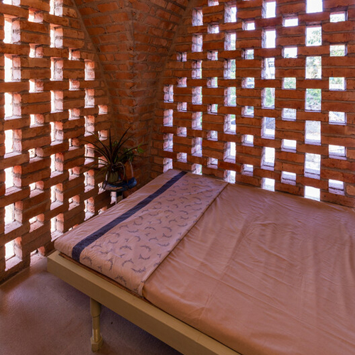The brick vault is cleverly combined with brick jaalis to control the daylight, allow cross ventilation and at the same time, through the high density of the city, maintain privacy.