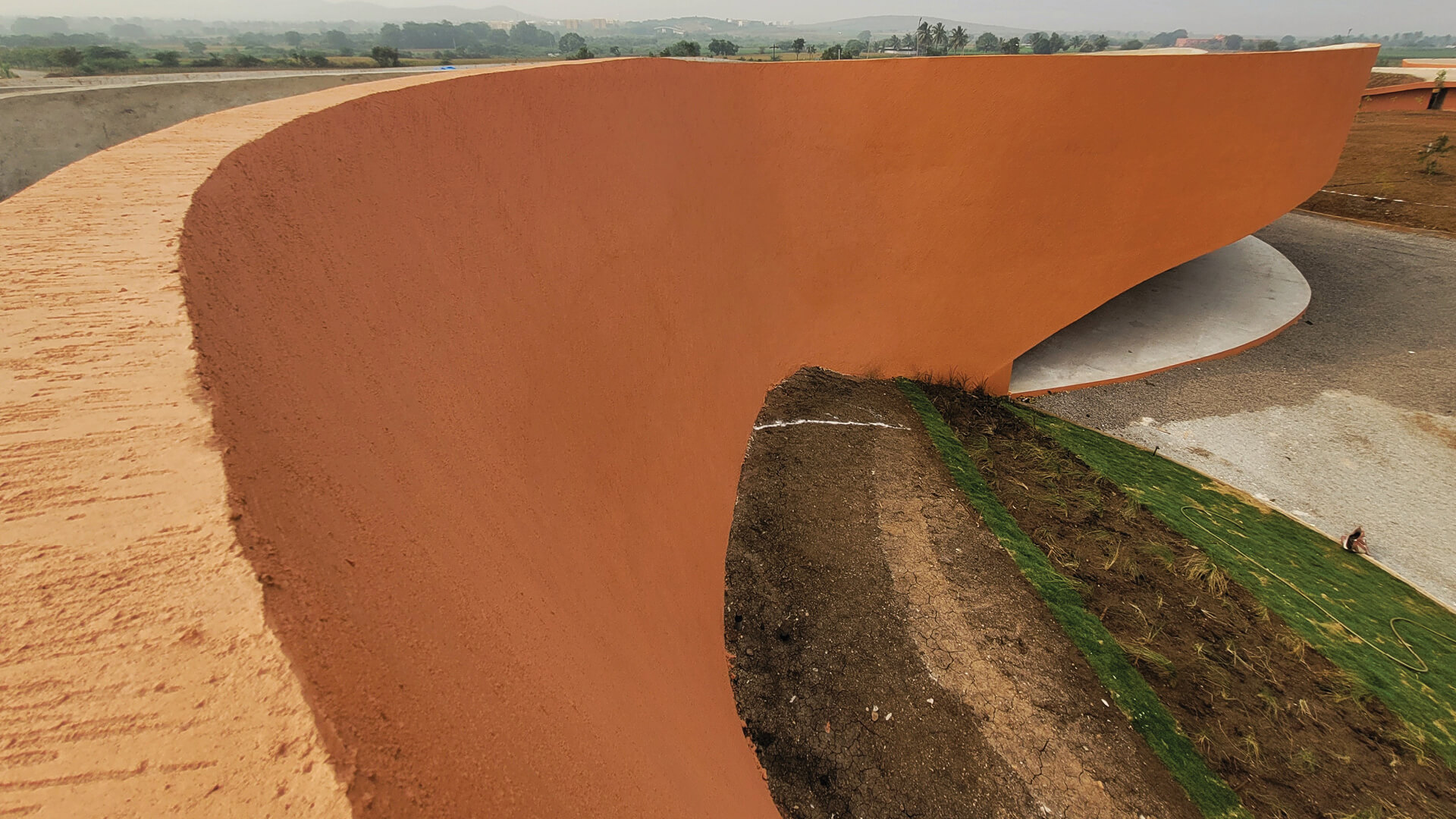 One of the most striking features of the Hampi Art Labs is its terracotta-colored render, which covers the curving concrete structure. This distinctive hue is achieved using locally sourced iron oxide, echoing the earthy tones of the surrounding landscape. By utilizing materials that are indigenous to the region, the architects pay homage to the rich tradition of craftsmanship that defines Indian architecture.