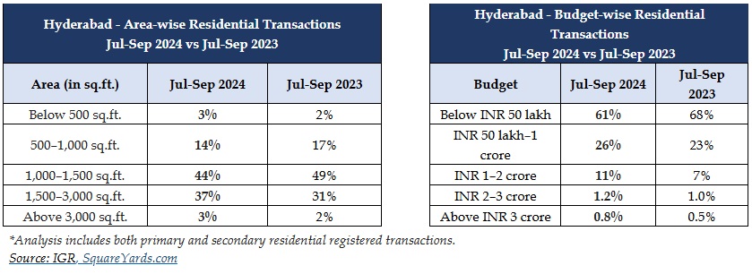 Debayan Bhattacharya, Principal Partner & Sales Director, Square Yards said, “Hyderabad has maintained strong momentum, driven by growth in the IT sector and a steady influx of working professionals. In the September quarter, residential transactions increased by 7% year-on-year, while sales value saw an even more impressive growth of 20%. Buyers are prioritizing a blend of convenience and connectivity and are willing to pay a premium for such properties. In addition to established areas like Gachibowli and Madhapur, emerging localities such as Kokapet, Narsingi, and others near the Outer Ring Road (ORR) are experiencing heightened residential activity due to excellent connectivity to both the airport and Hyderabad's IT hubs. Moving forward, we are confident the city's residential market will sustain its upward trajectory in the upcoming months.”