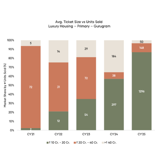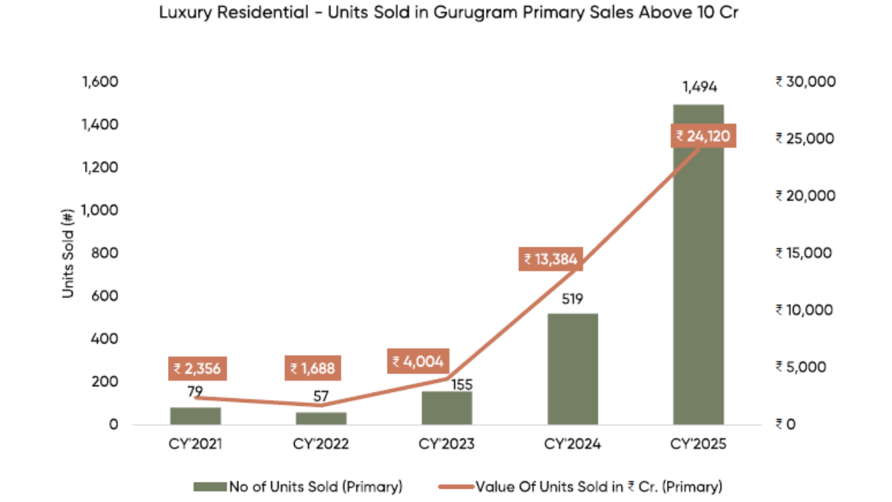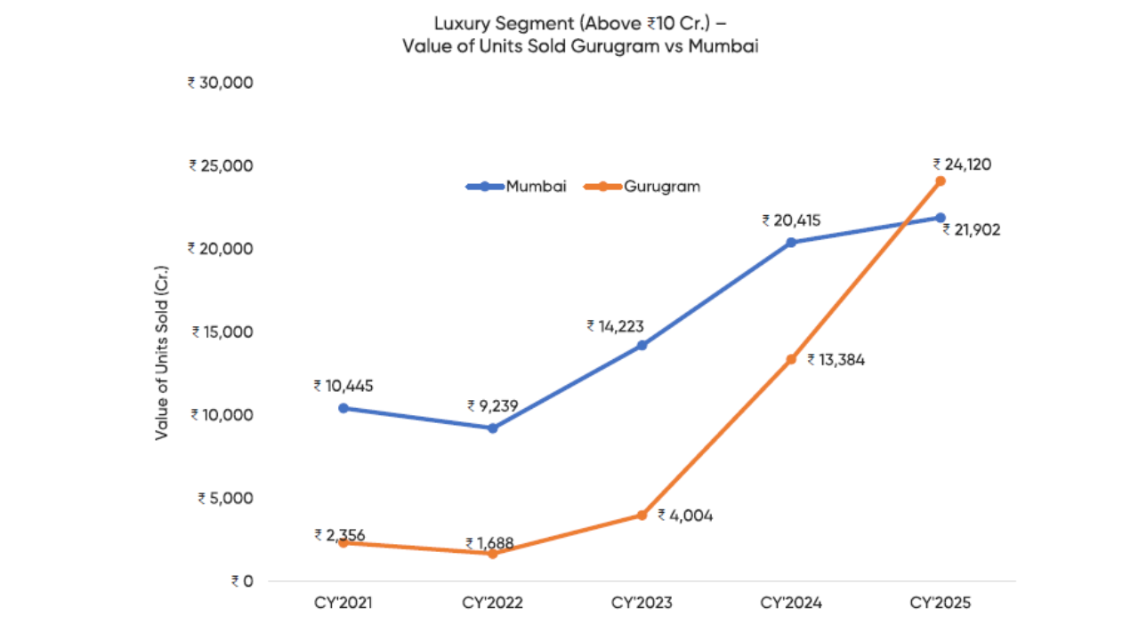 - ₹24,120 crore worth of luxury homes (₹10 crore+) sold in Gurugram in CY2025.