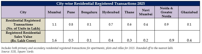 “This divergence reflects a maturing market, where growth is increasingly shaped by demand rather than volume-led expansion. Amid a sharp rise in the number of wealthy Indians with higher disposable incomes, premium and luxury housing dominated value contribution in 2025, particularly across markets such as the MMR,” said Tanuj Shori, Founder & CEO, Square Yards.
