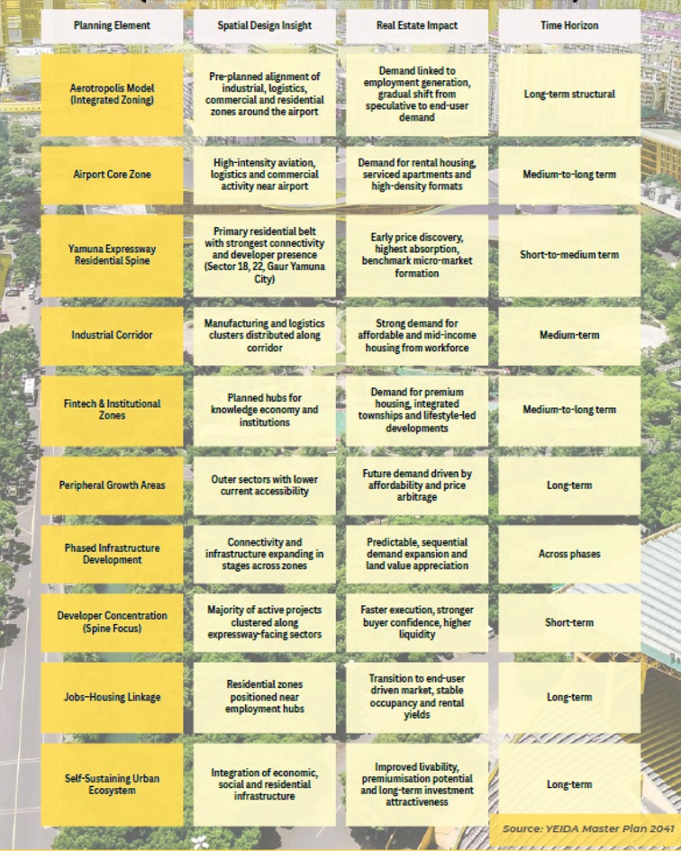 A key highlight of the report is the region’s planned aerotropolis-led development, positioning it alongside global benchmarks such as Amsterdam’s Schiphol Airport. This model integrates aviation infrastructure with commercial, industrial, logistics and residential ecosystems to create self-sustaining urban hubs.