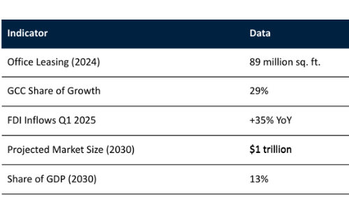 • 89 mn sq. ft. of office leasing in 2024; 35% FDI surge in Q1 2025