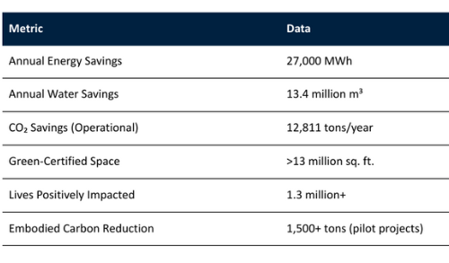 • Demonstrated outcomes: 27,000 MWh energy savings and 13.4 million m³ water savings per year