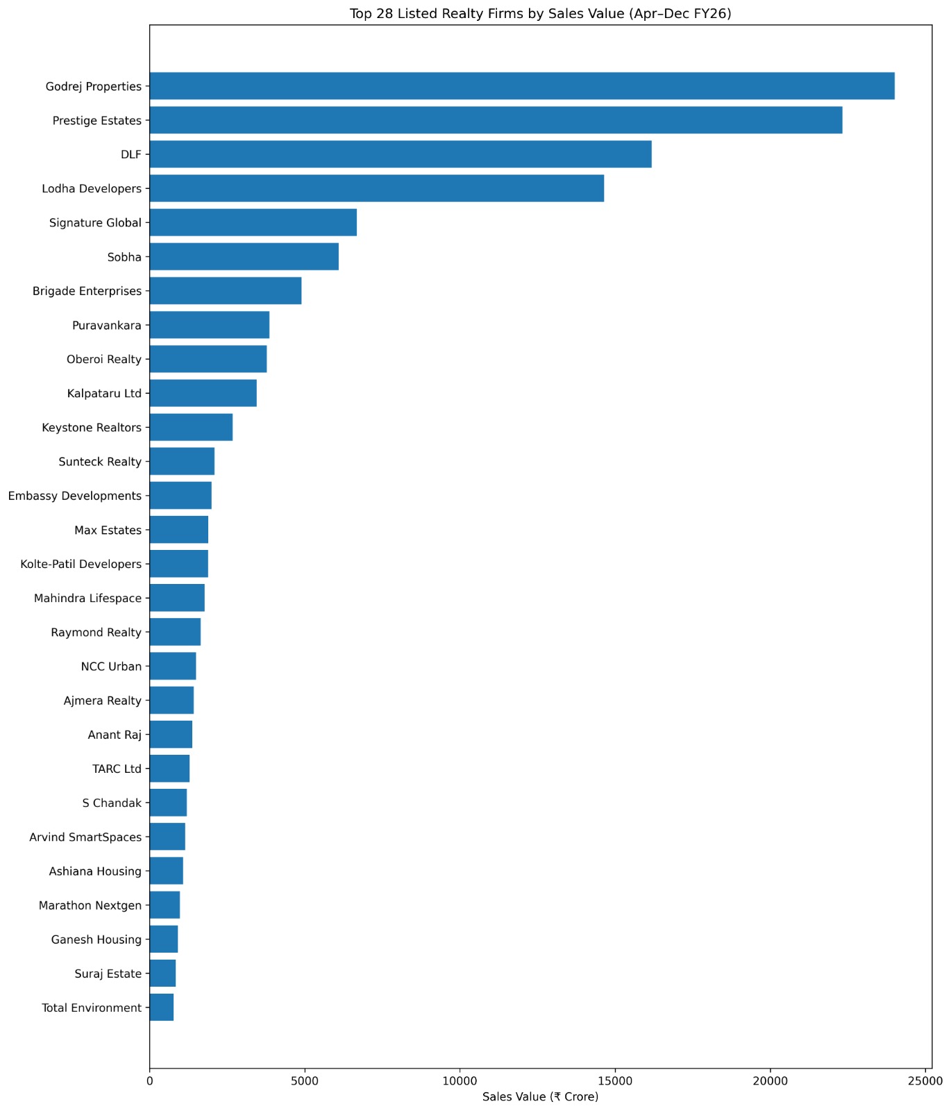 Top 10 Listed Realty Firms by Sales Value (Apr–Dec FY26)