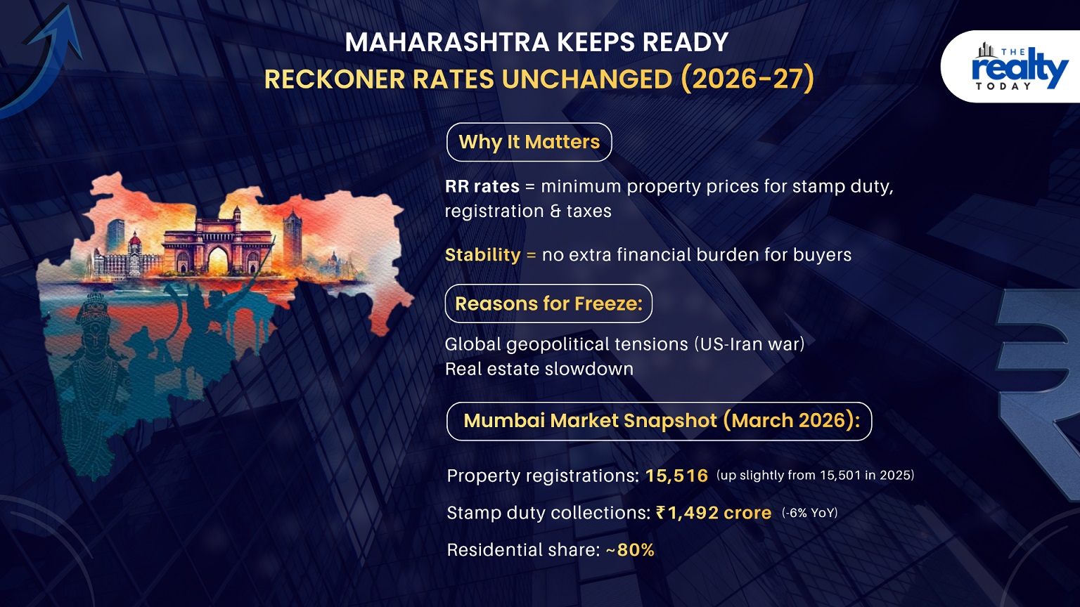 As the real estate market is facing slowdown, the Government of Maharashtra decided that the ready reckoner (RR) rates will remain the same for the year 2026-27 in order to bring some stability in the market. Revenue Minister Chandrashekhar Bawankule said continuing geopolitical tensions and real estate deceleration along with other factors have forced them to refrain from increasing the RR rates statewide, which will help the common man to some extent in managing his financial burden.