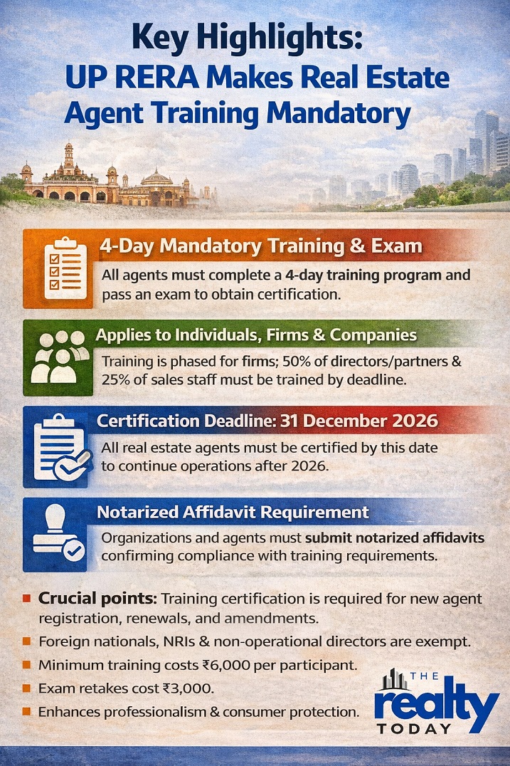 - All agents must complete training by 31 December 2026; this initiative strengthens professionalism, accountability, and consumer protection in the UP real estate sector.