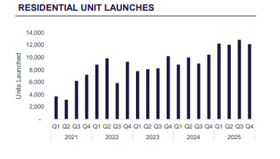 According to the report by Cushman and Wakefield, Bengaluru witnessed the launch of 12, 149 units in Q4 2025, marking a 16% growth Abid Jeauof on an annual basis. The quarterly average was kept at the level of 12000+ launches, which is indicative of a market in good health. The strong demand of the festive season also resulted in a healthy level of launch activity.