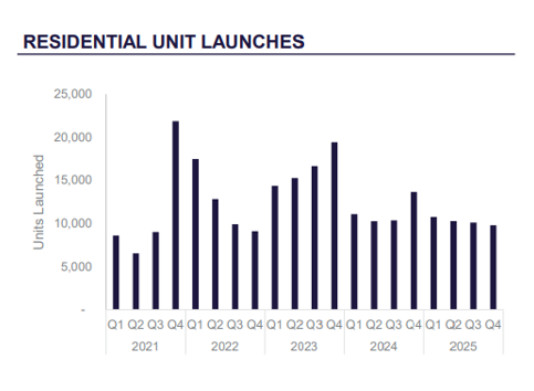 For the full year, residential launches stood at 41,061 units in 2025. Launch activity over the year remained concentrated in western corridors of the city, while southern micro-markets such as Rajendranagar and Shamshabad, and northern locations including Kompally, also contributed to annual supply.