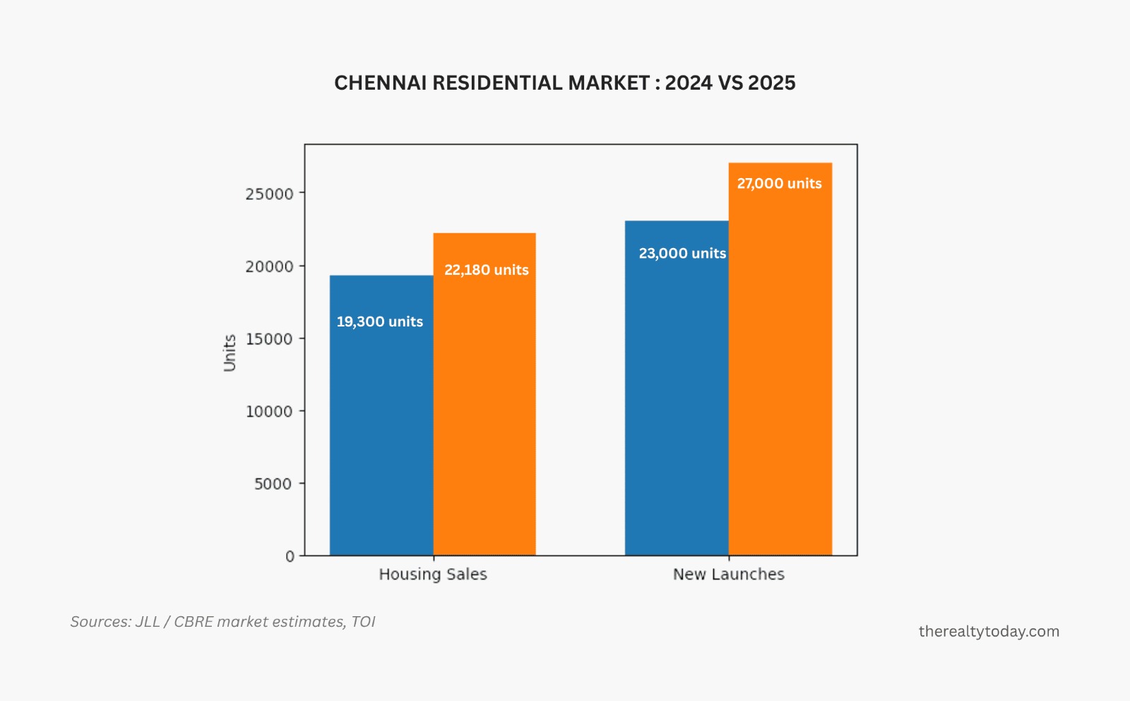 The timing aligns with a clear upcycle in Chennai’s housing market, which has diverged from other metros on both supply and demand metrics. Residential sales in Chennai rose 15% year-on-year to 22,180 units in 2025, even as the top seven Indian cities collectively saw a decline, indicating a stronger end-user-driven market.