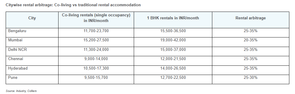 Co-living inventory, meanwhile, stands at around 0.3 million beds only, translating into a penetration rate of about 5%. Given the intrinsic nature of demand, leading operators are in an expansionary mode. As the co-living inventory is set to reach close to 1 million beds by 2030, penetration rates can significantly improve from 5% to over 10% by the end of the decade.