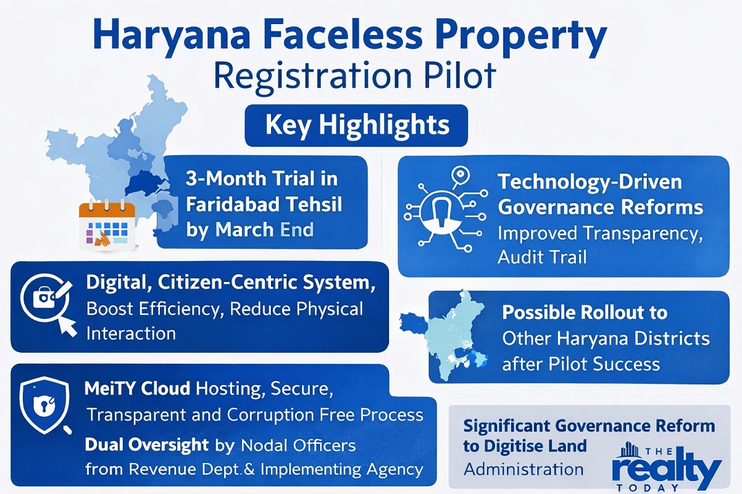 - Pilot Launch: Haryana will implement a faceless property registration system in one tehsil of Faridabad by the end of March, as a three-month trial before possible state-wide rollout.